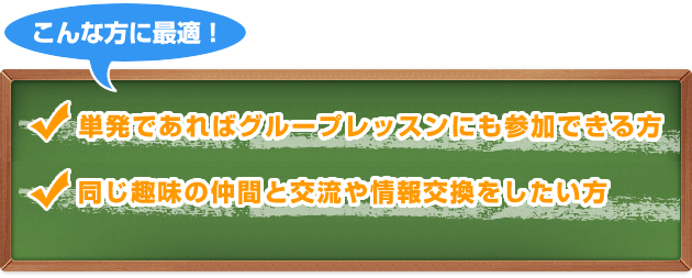 当校でプライベートまたはセミプライベートレッスンを受講されている方対象のグループレッスンです。